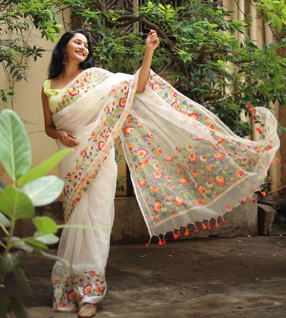 Description: Our hand-embroidered sarees are crafted with love and care, showcasing the rich heritage of traditional embroidery. The intricate designs and luxurious fabrics make these sarees perfect for weddings, festivals, and special occasions. Drape yourself in one of our masterpieces and experience the beauty and elegance that only a hand-embroidered saree can offer.